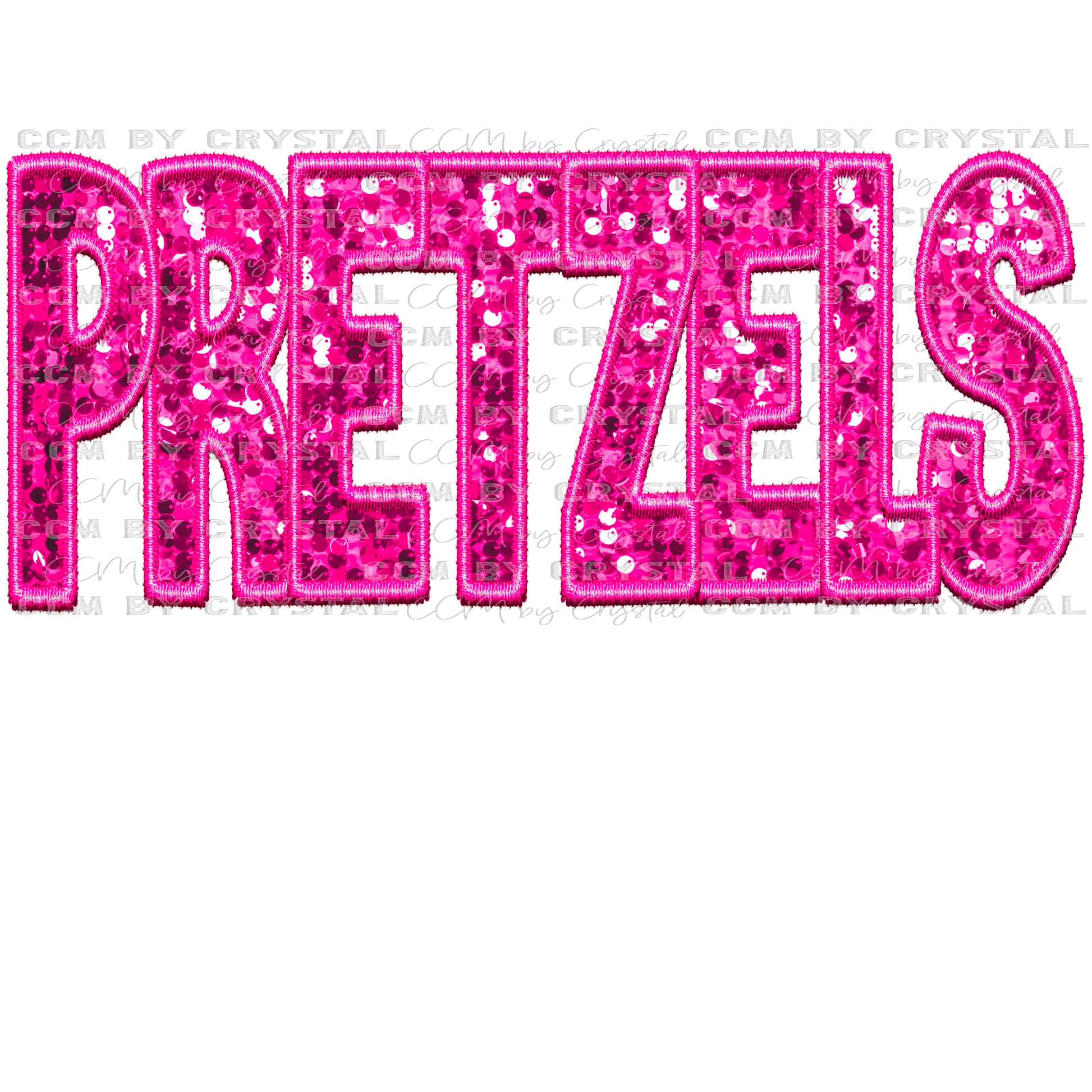 Pretzels Pink Mascot Faux Embroidery Faux Sequins PNG Digital File ONLY