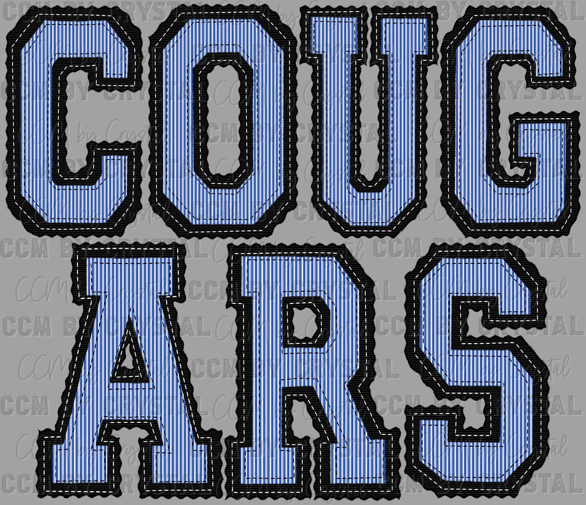 Cougars Faux Embroidery Stripes Blue Sports Mascot Ready to Press Transfer DTF Transfer Sublimation Transfer