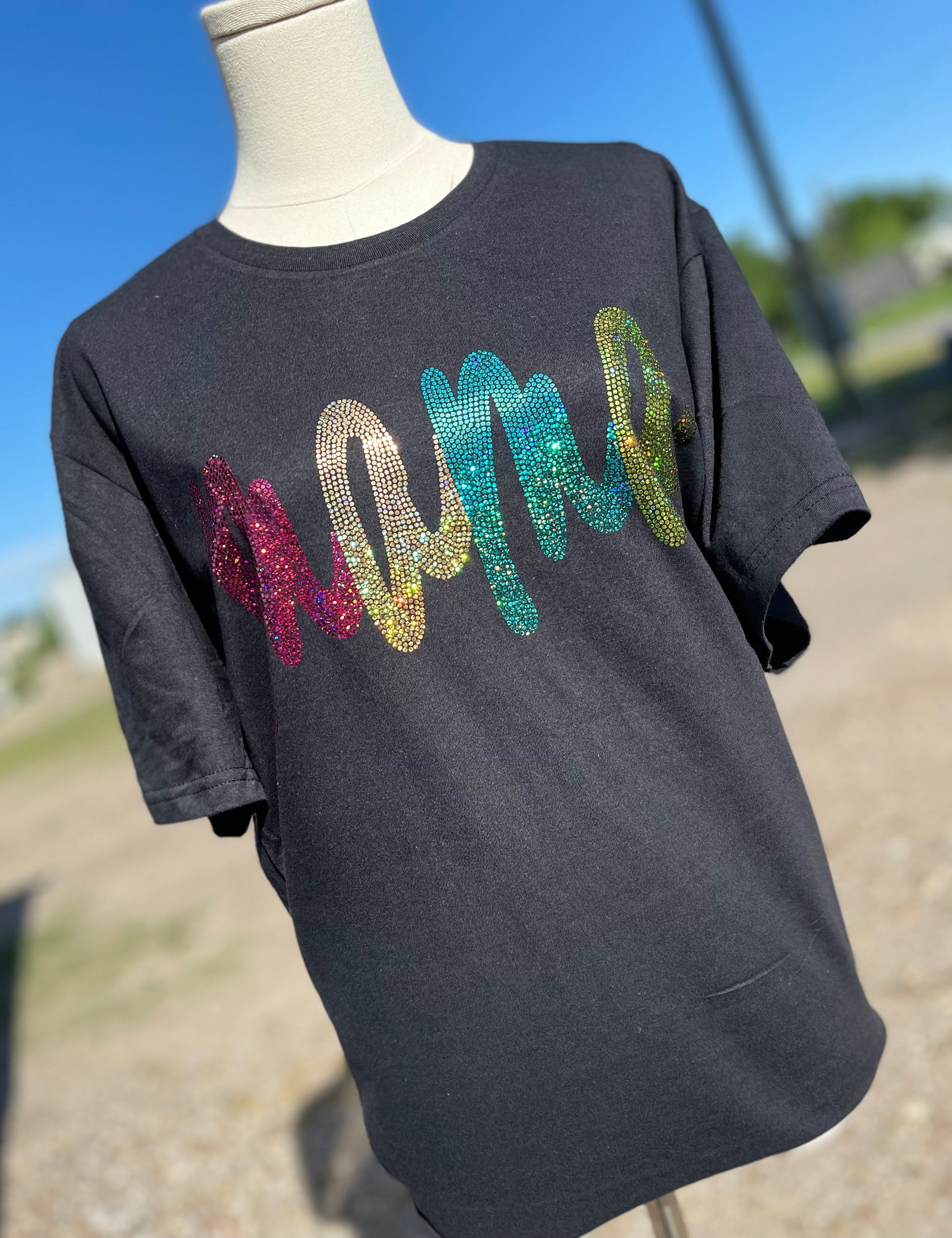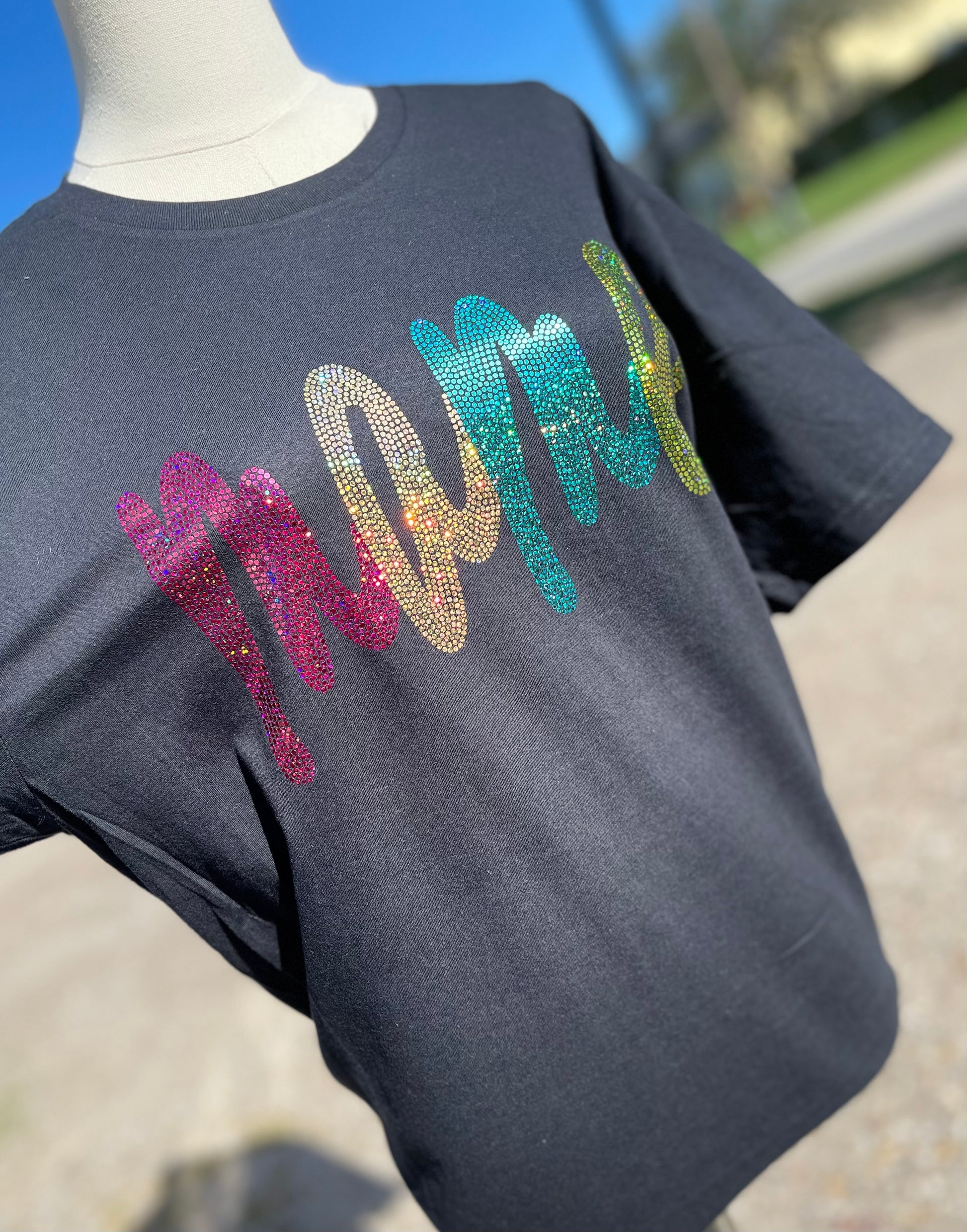 Rainbow Mama Bling Adult SHORT SLEEVE Black T-Shirt