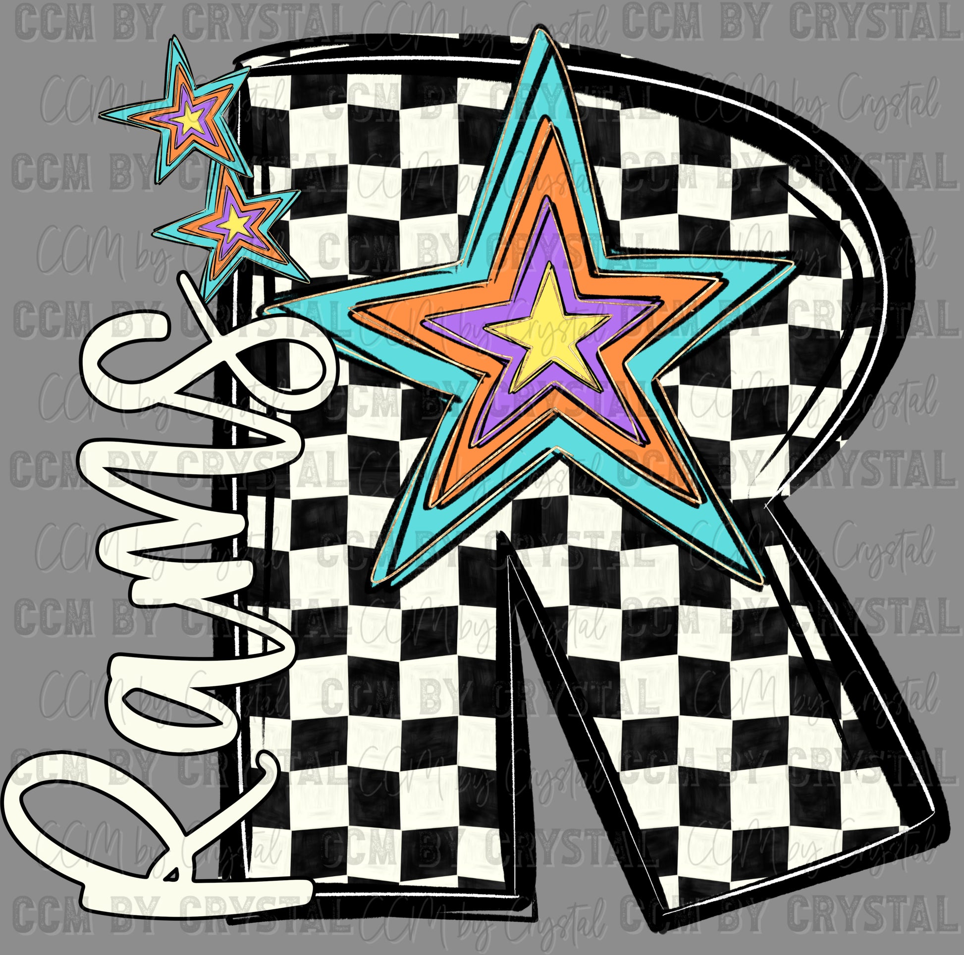 R Rams Checkered Mascot Ready to Press Transfer DTF Transfer Sublimation Transfer