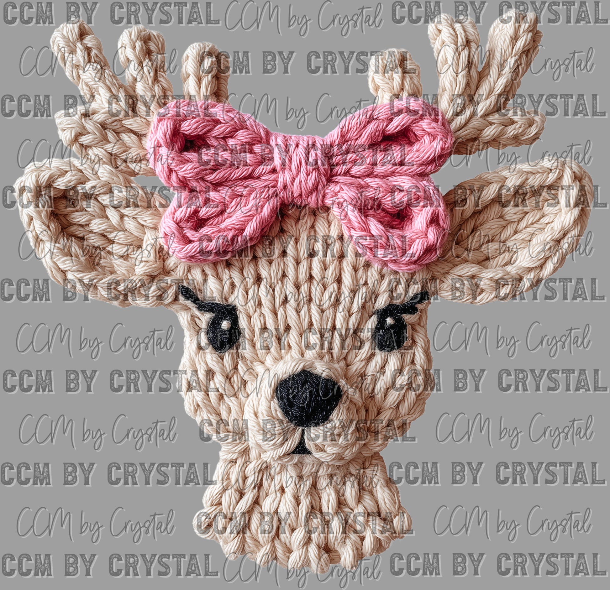Reindeer Bow Christmas Faux Yarn UV DTF Transfer Sticker UV Transfer Ready to Apply
