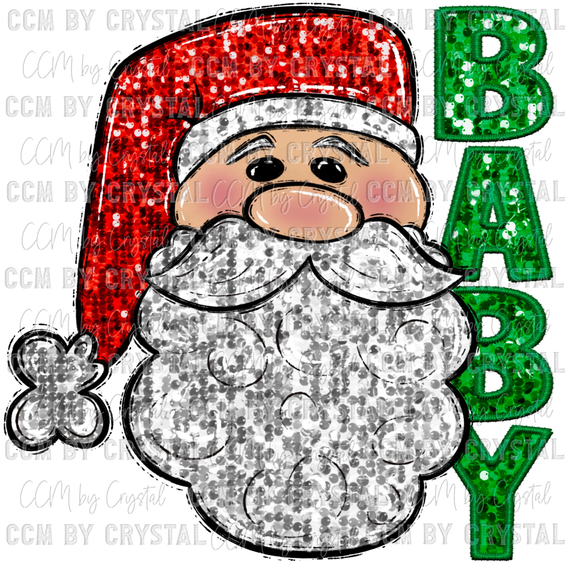 Santa Baby Christmas Faux Embroidery Faux Sequins Ready To Press Transfer DTF Sublimation