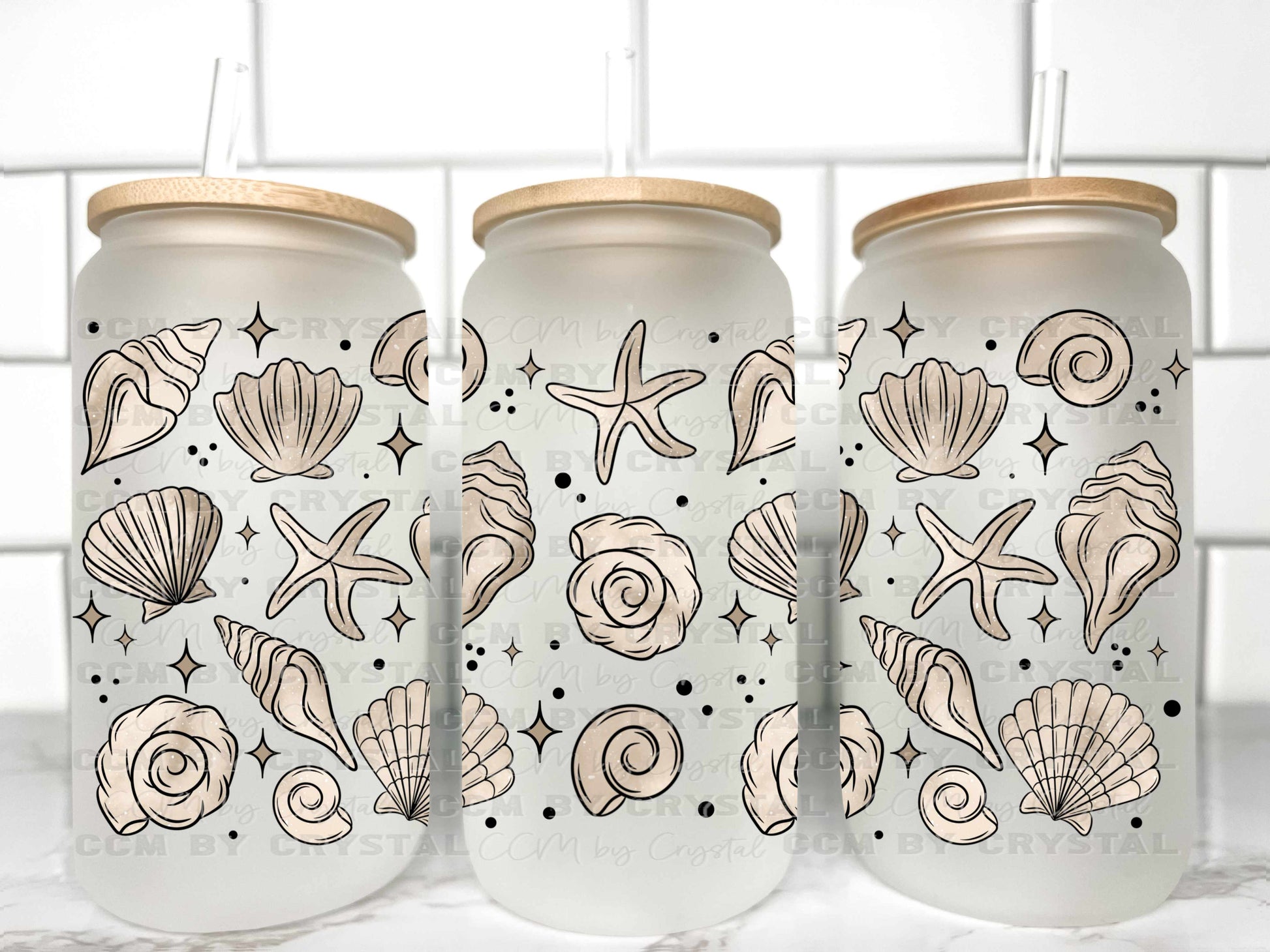 Seashells Summer Beach UV Transfer 16oz Libby Glass Can Wrap Ready to Apply