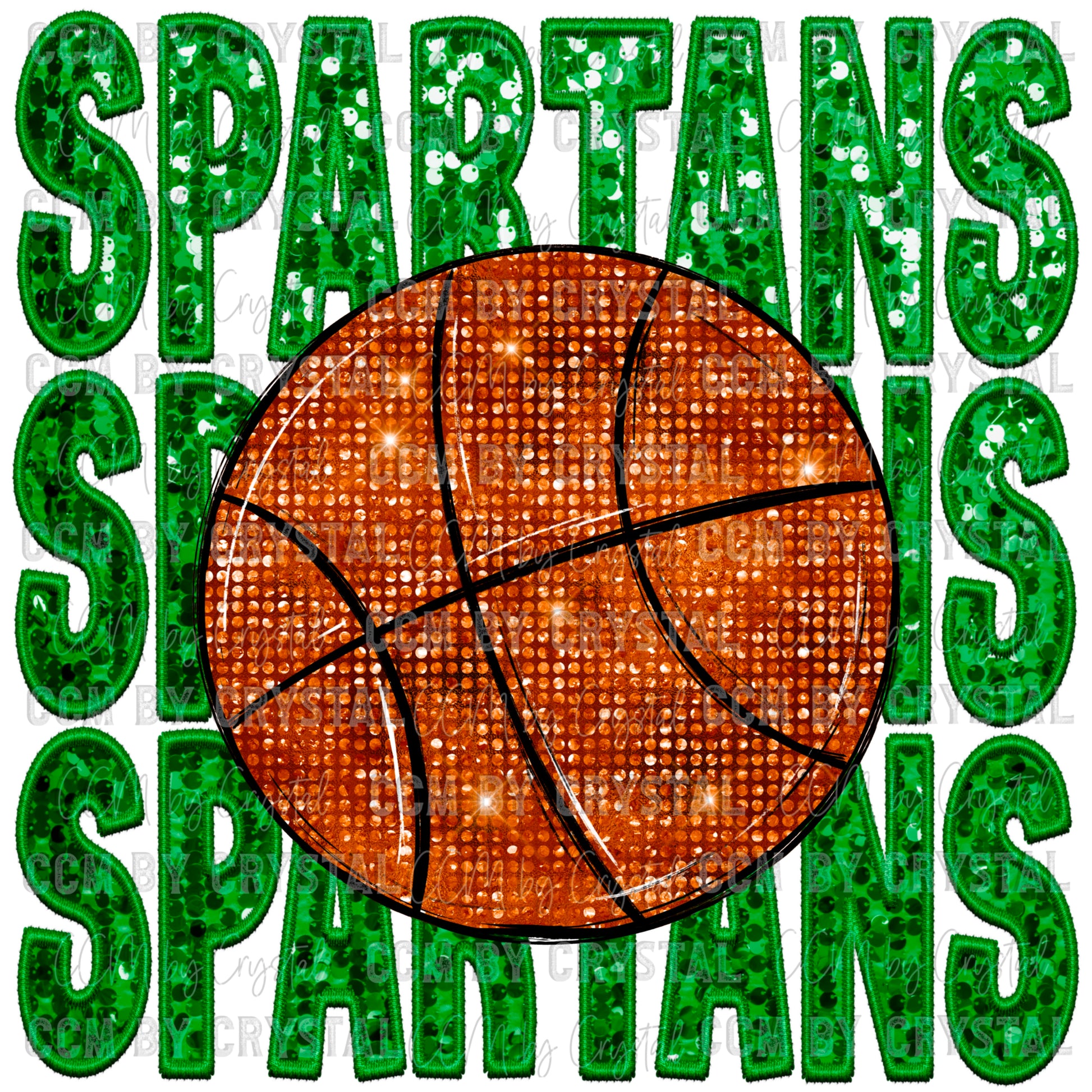 Spartans Basketball Green Faux Embroidery Faux Sequins PNG Digital File ONLY