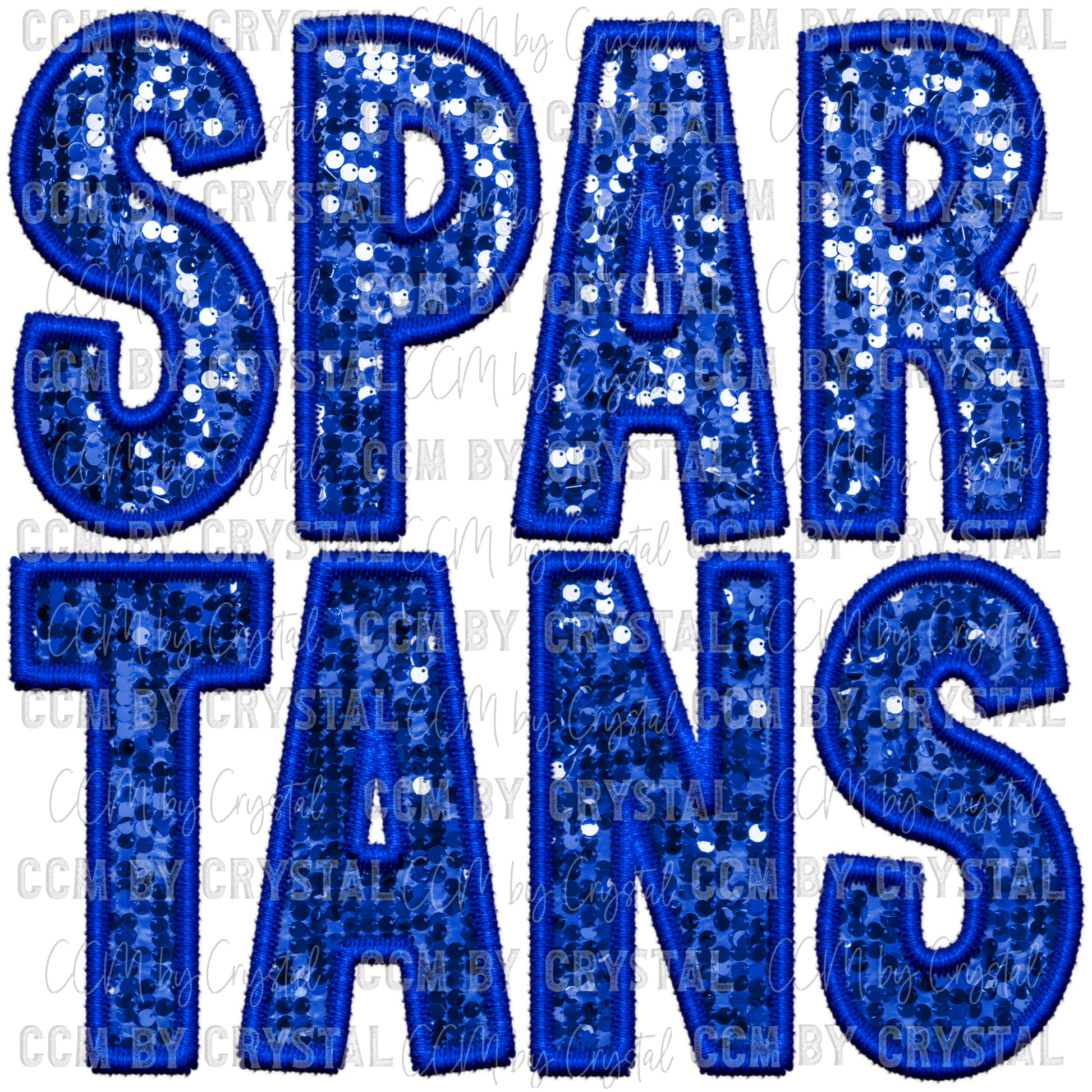 Spartans Blue Mascot Faux Sequins Faux Embroidery PNG Digital File ONLY