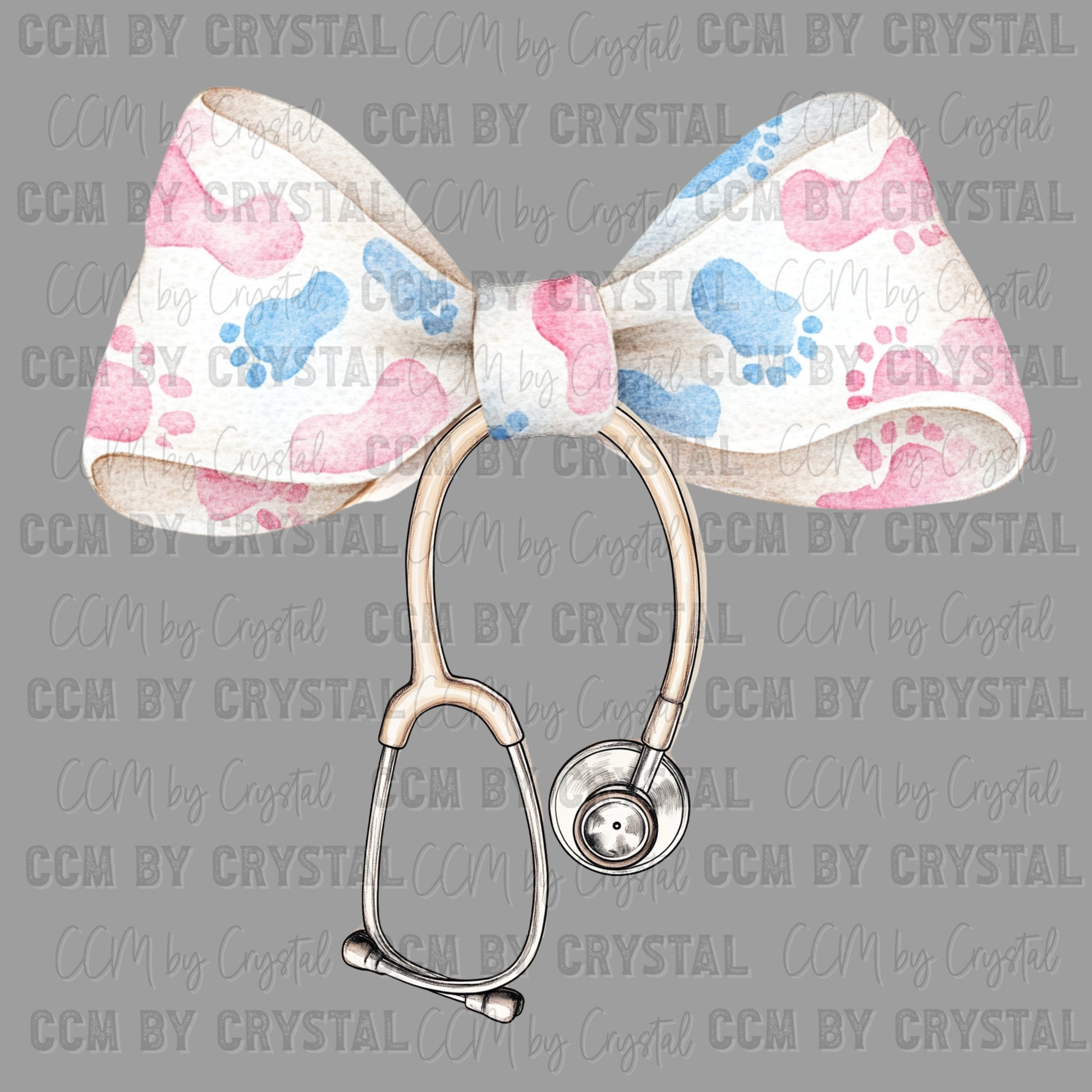 Stethoscope Baby Feet Bow Nurse Ready to Press Transfer DTF Transfer Sublimation Transfer