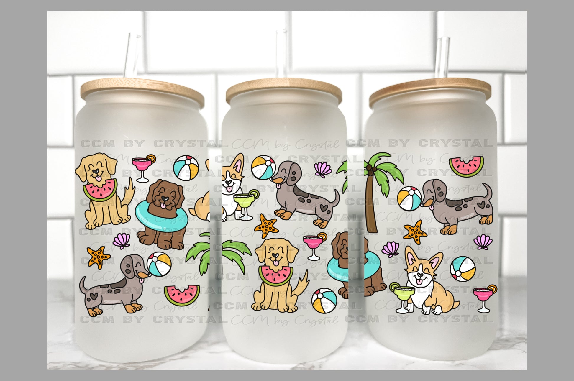 Summer Dogs UV Transfer 16oz Libby Glass Can Wrap Ready to Apply