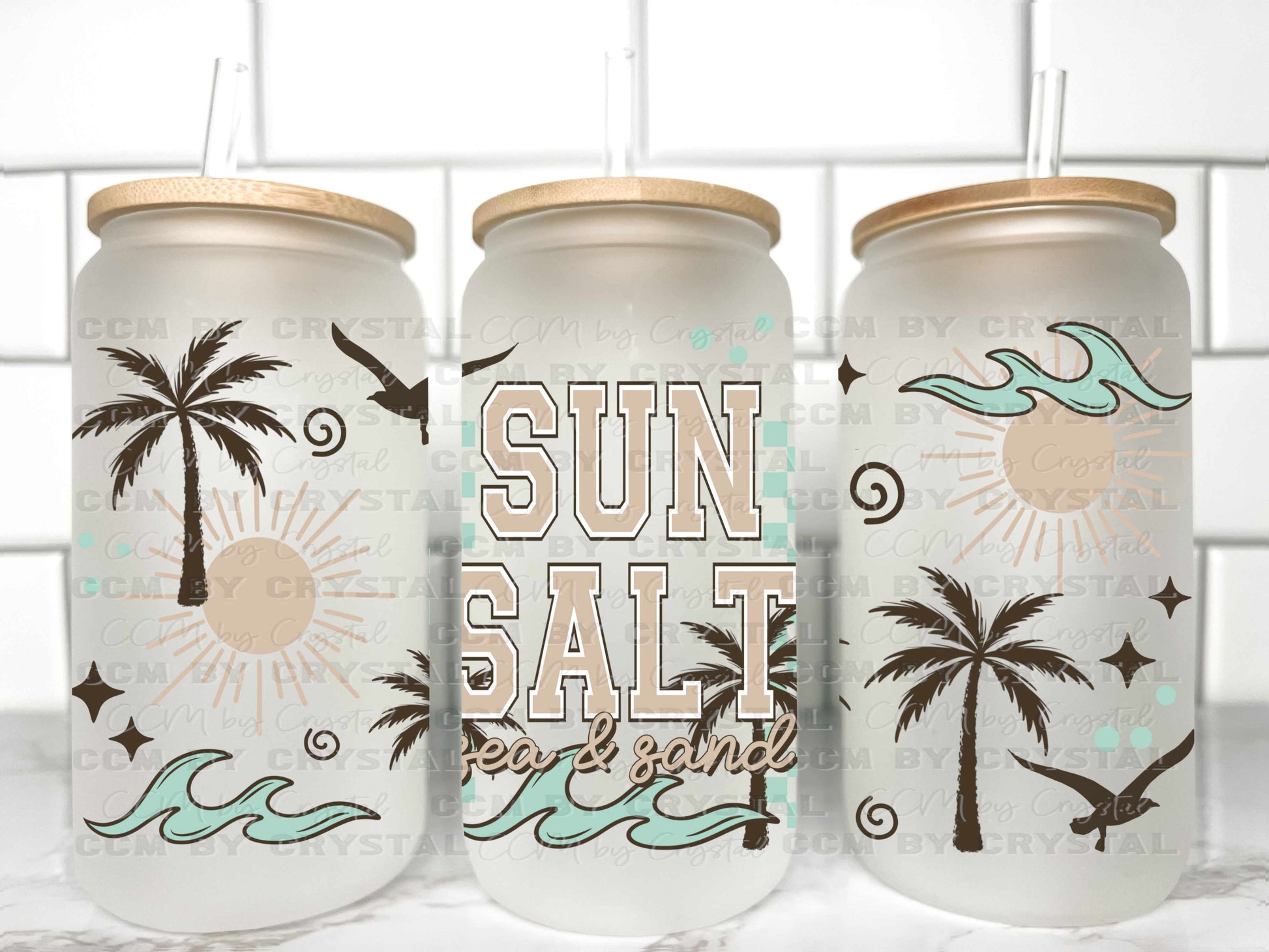 Sun Salt Sea & Sand Summer Beach UV Transfer 16oz Libby Glass Can Wrap Ready to Apply