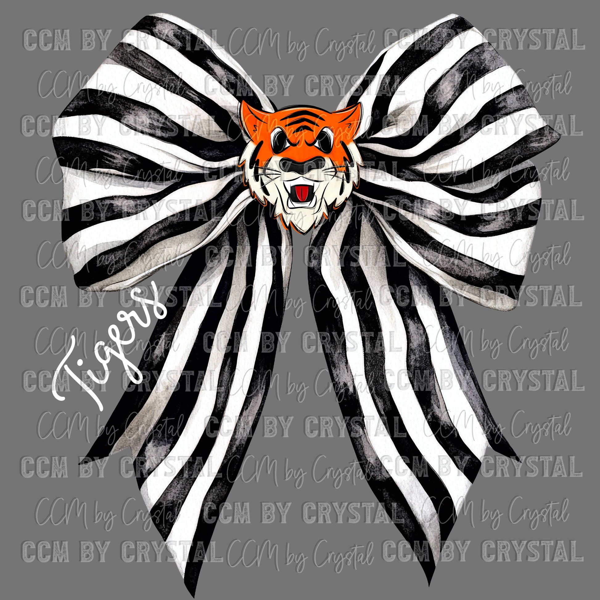 Tigers Black and White Bow Mascot Tiger Face Ready to Press Transfer DTF Transfer Sublimation Transfer