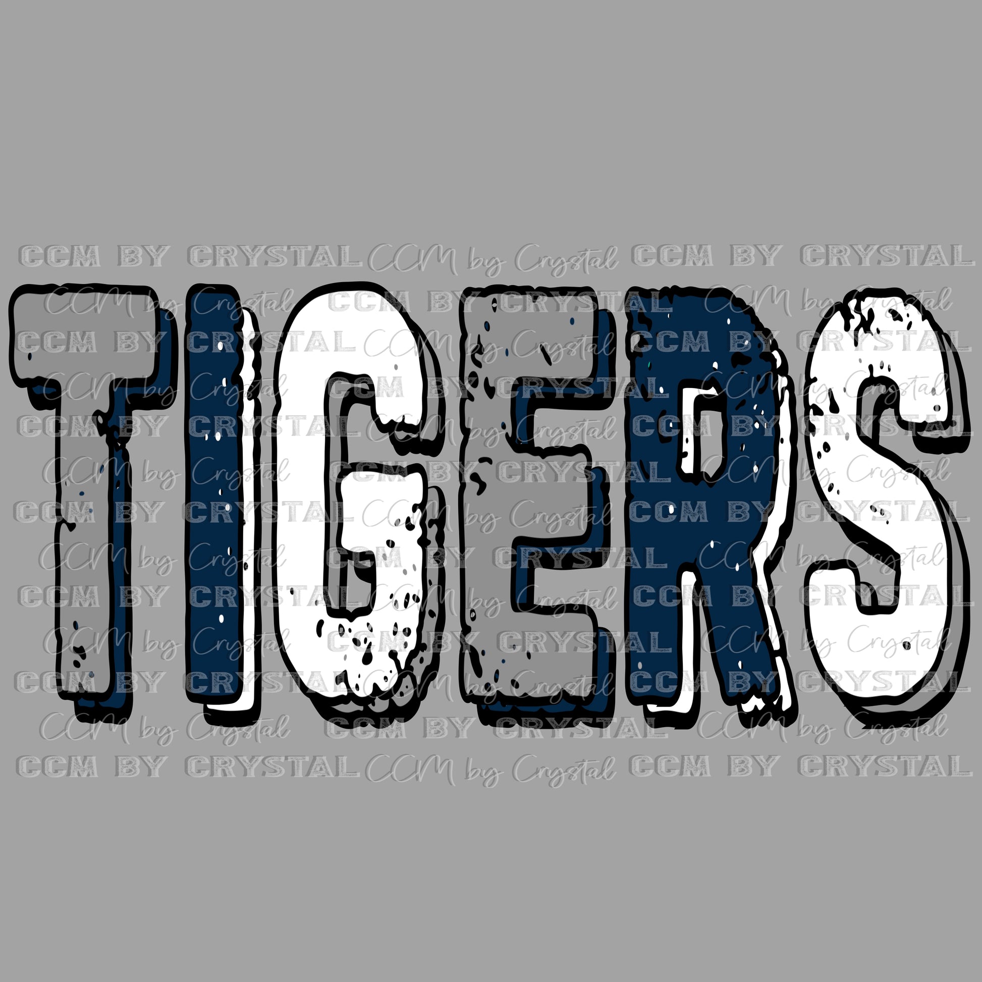 Tigers Navy Grey White Mascot Ready to Press Transfer DTF Transfer Sublimation Transfer