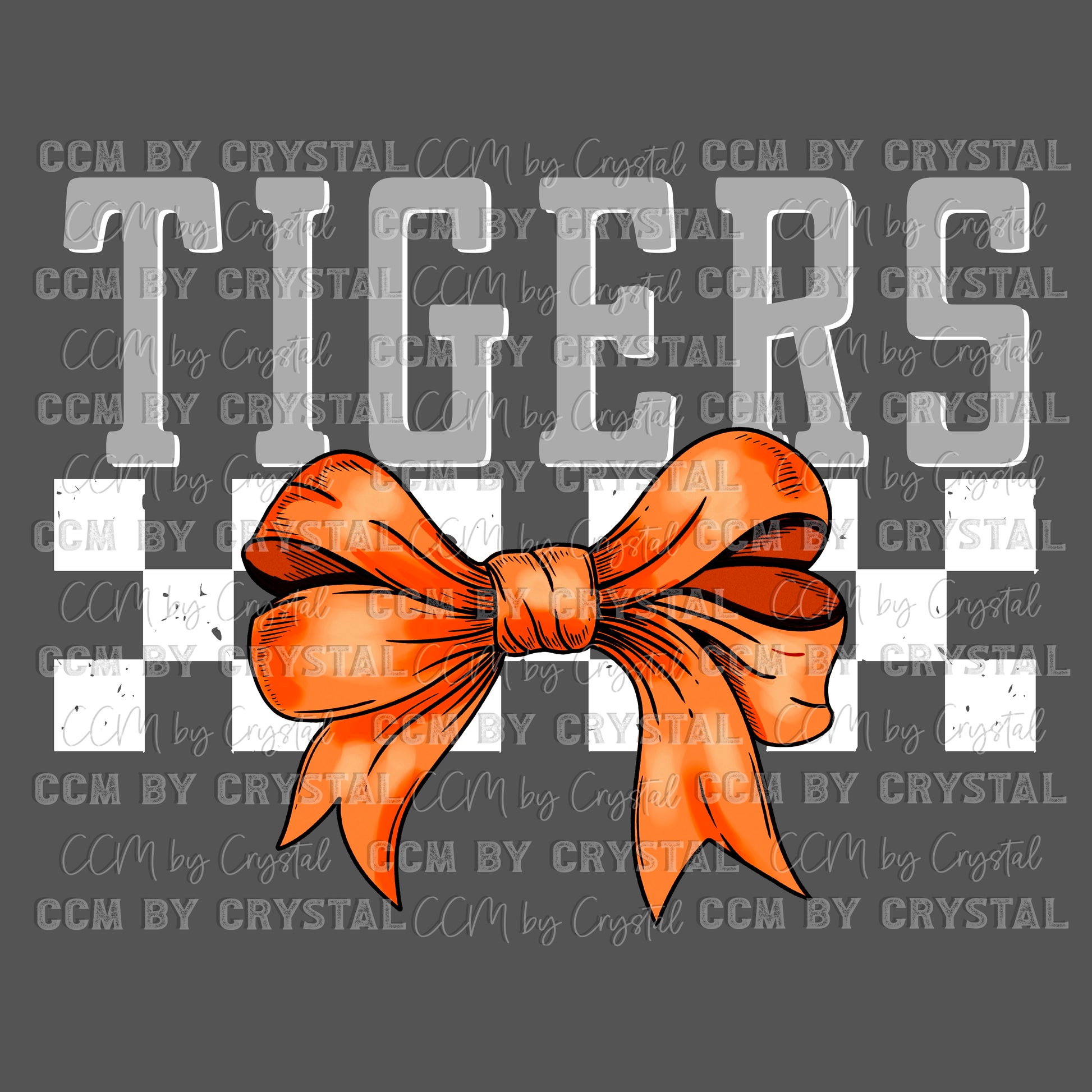 Tigers Orange Bow Mascot Ready to Press Transfer DTF Transfer Sublimation Transfer