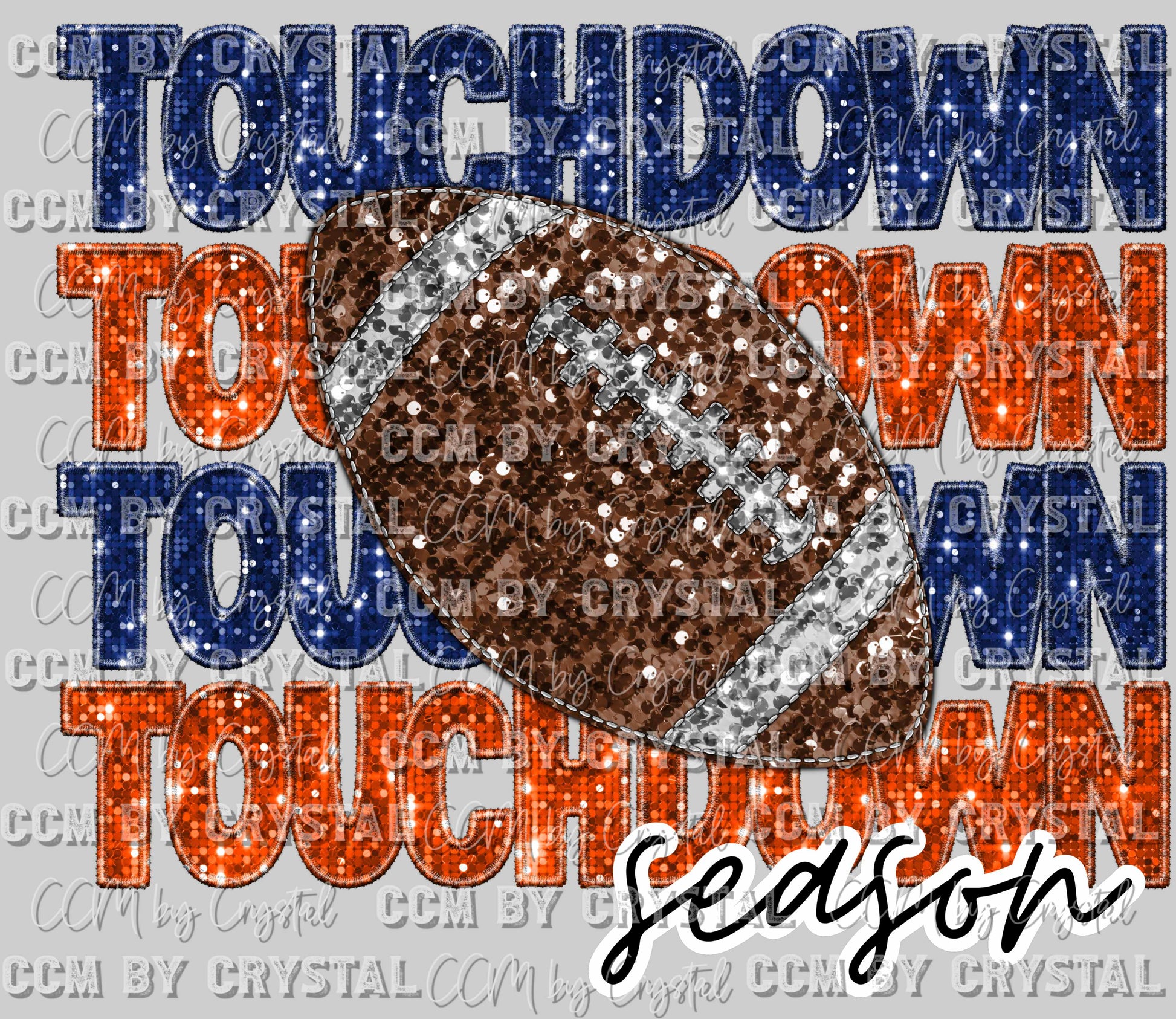 Touchdown Season Football Faux Embroidery Faux Sequins Ready to Press Transfer