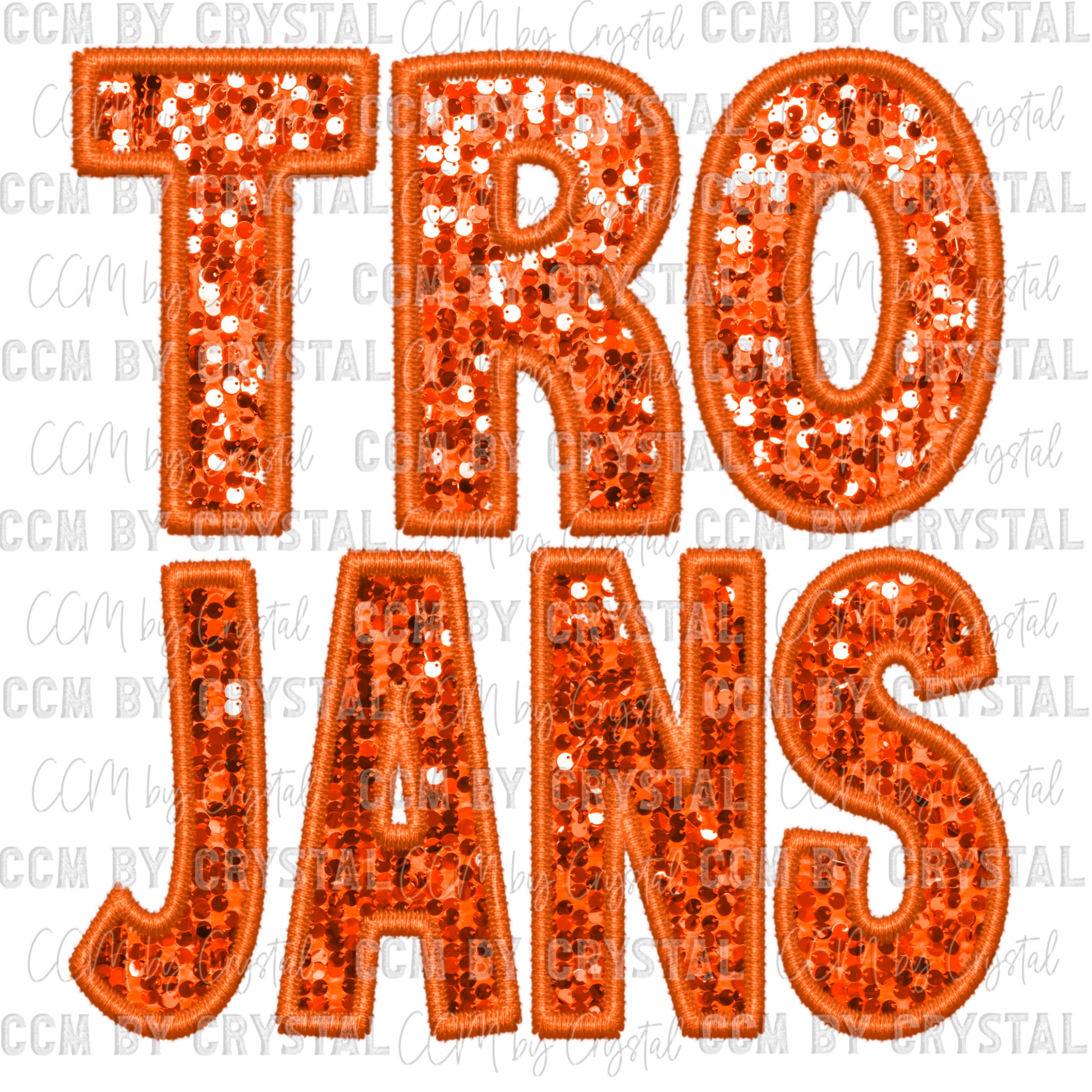 Trojans Faux Embroidery Faux Sequins Ready To Press Transfer