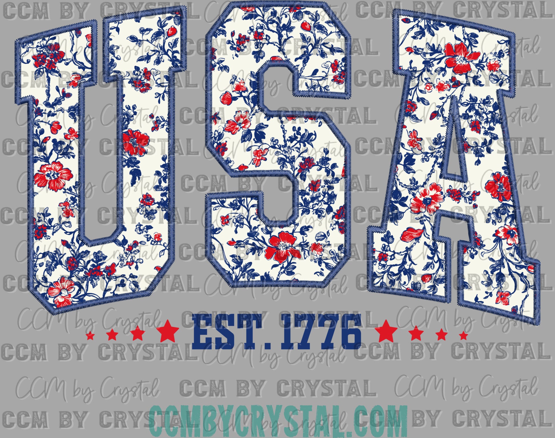 USA est 1776 Faux Embroidery Fourth of July 4th Patriotic Ready to Press Transfer DTF Transfer Sublimation Transfer