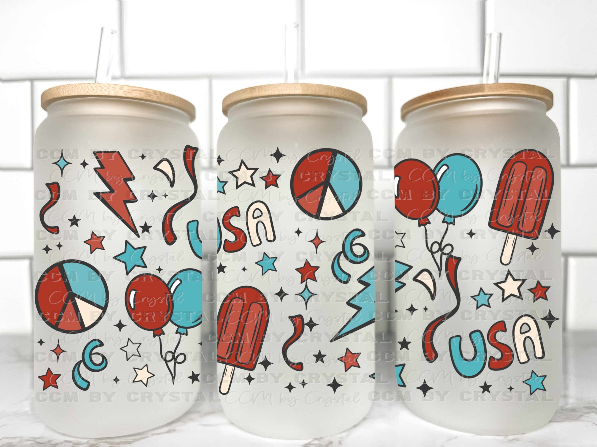 USA Summer UV Transfer 16oz Libby Glass Can Wrap Ready to Apply