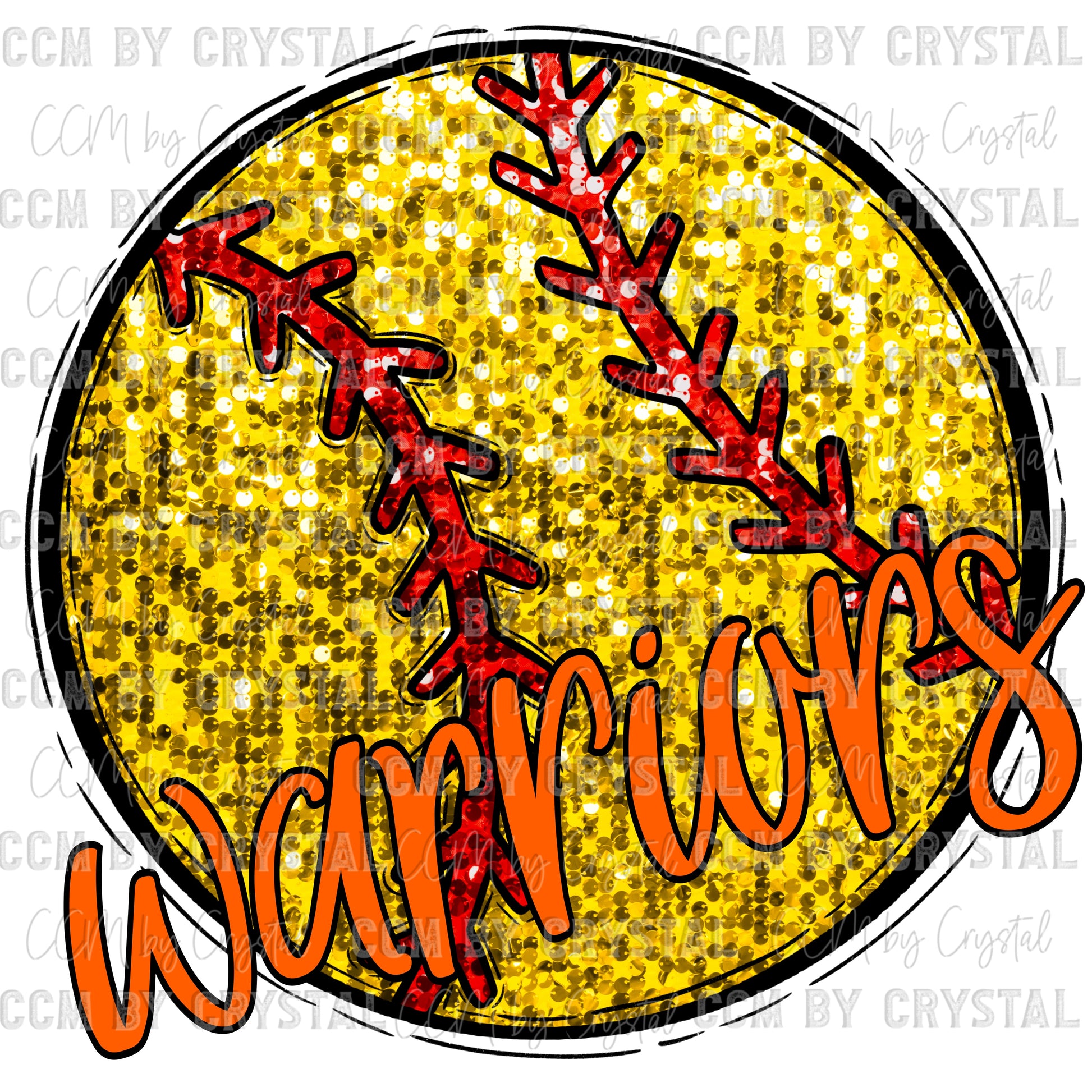Warriors Softball Faux Sequins Faux Embroidery PNG Digital File ONLY