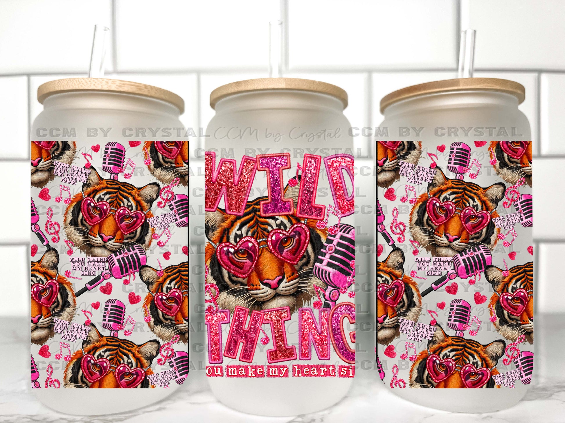 Wild Thing You Make my Heart Sing Valentines Day Tiger UV Transfer 16oz Libby Glass Can Wrap Ready to Apply