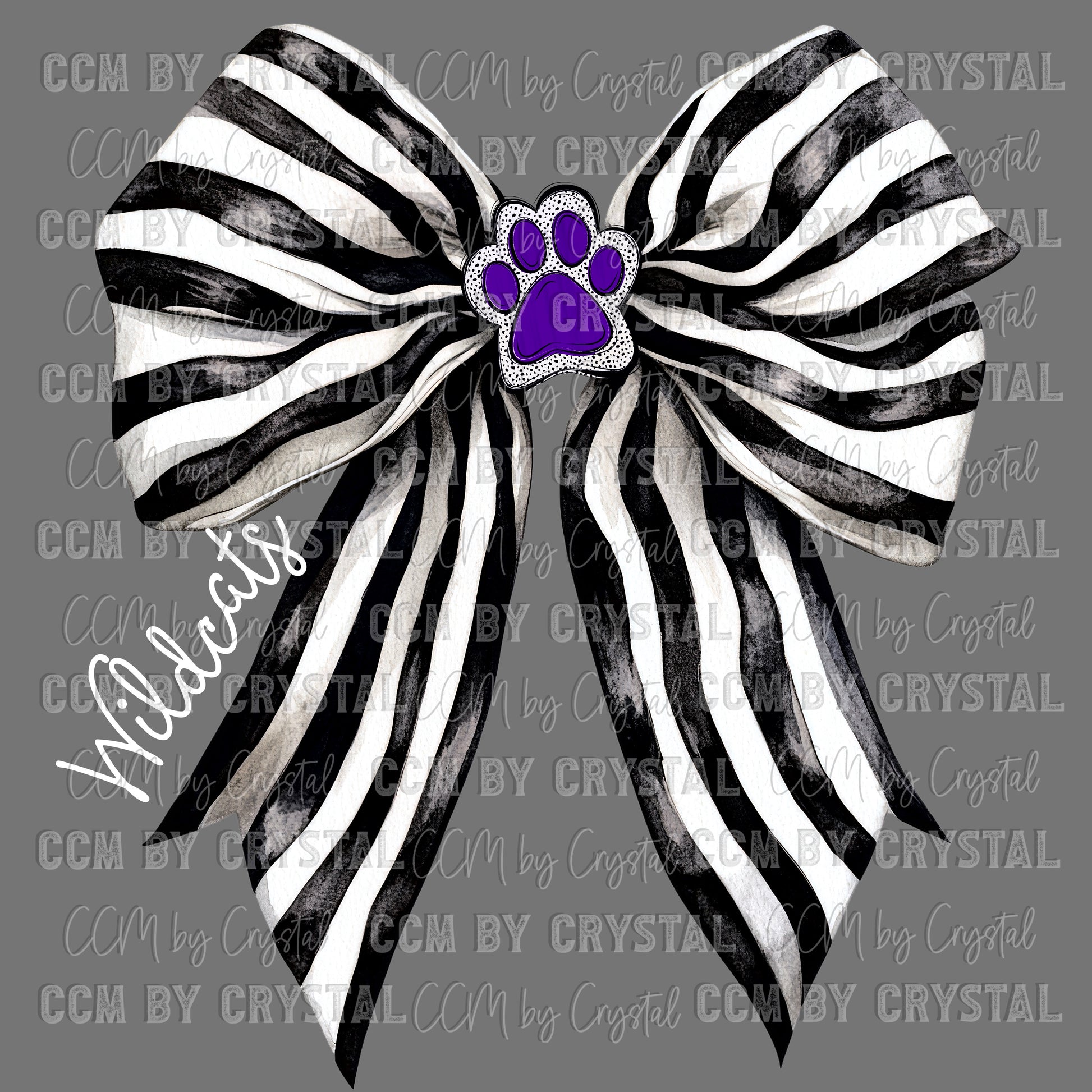 Wildcats Black and White Bow Mascot Purple Paw Ready to Press Transfer DTF Transfer Sublimation Transfer