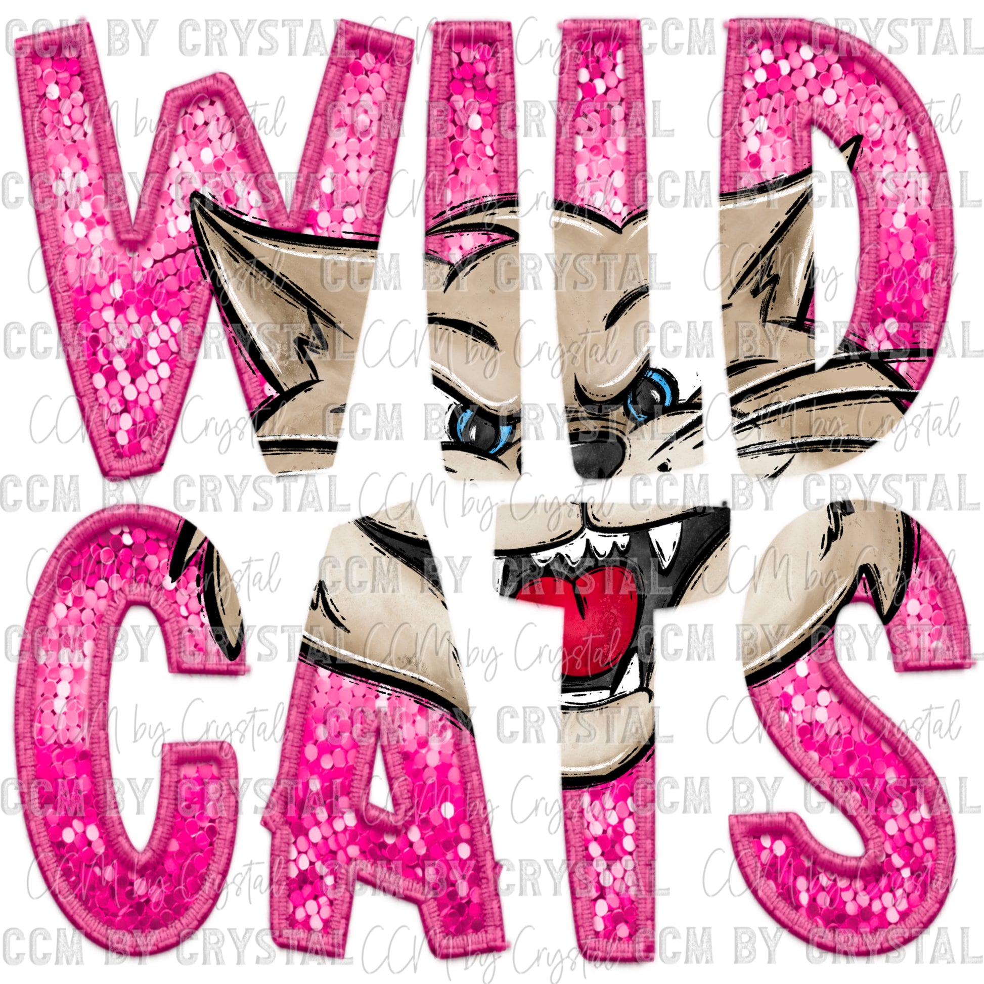 Wildcats Pink Mascot Faux Sequins Faux Embroidery PNG Digital File ONLY