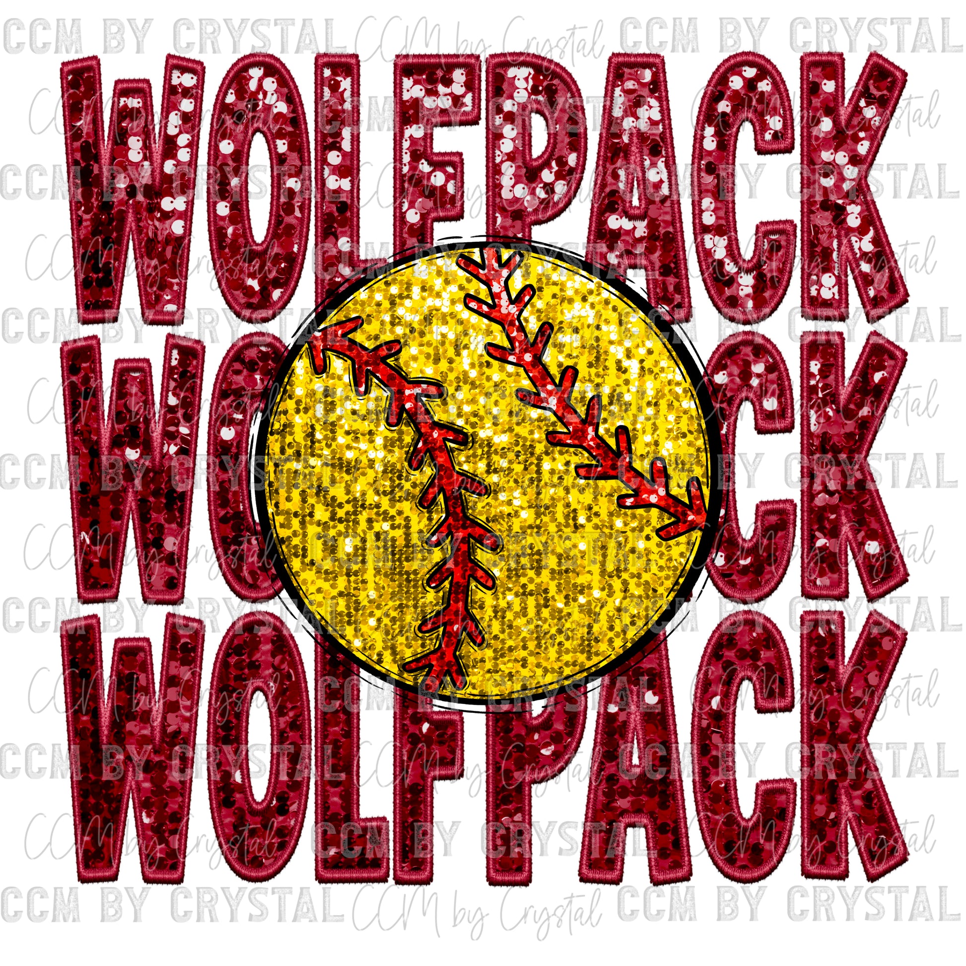 Wolf Pack Softball Faux Embroidery Faux Sequins PNG Digital File ONLY