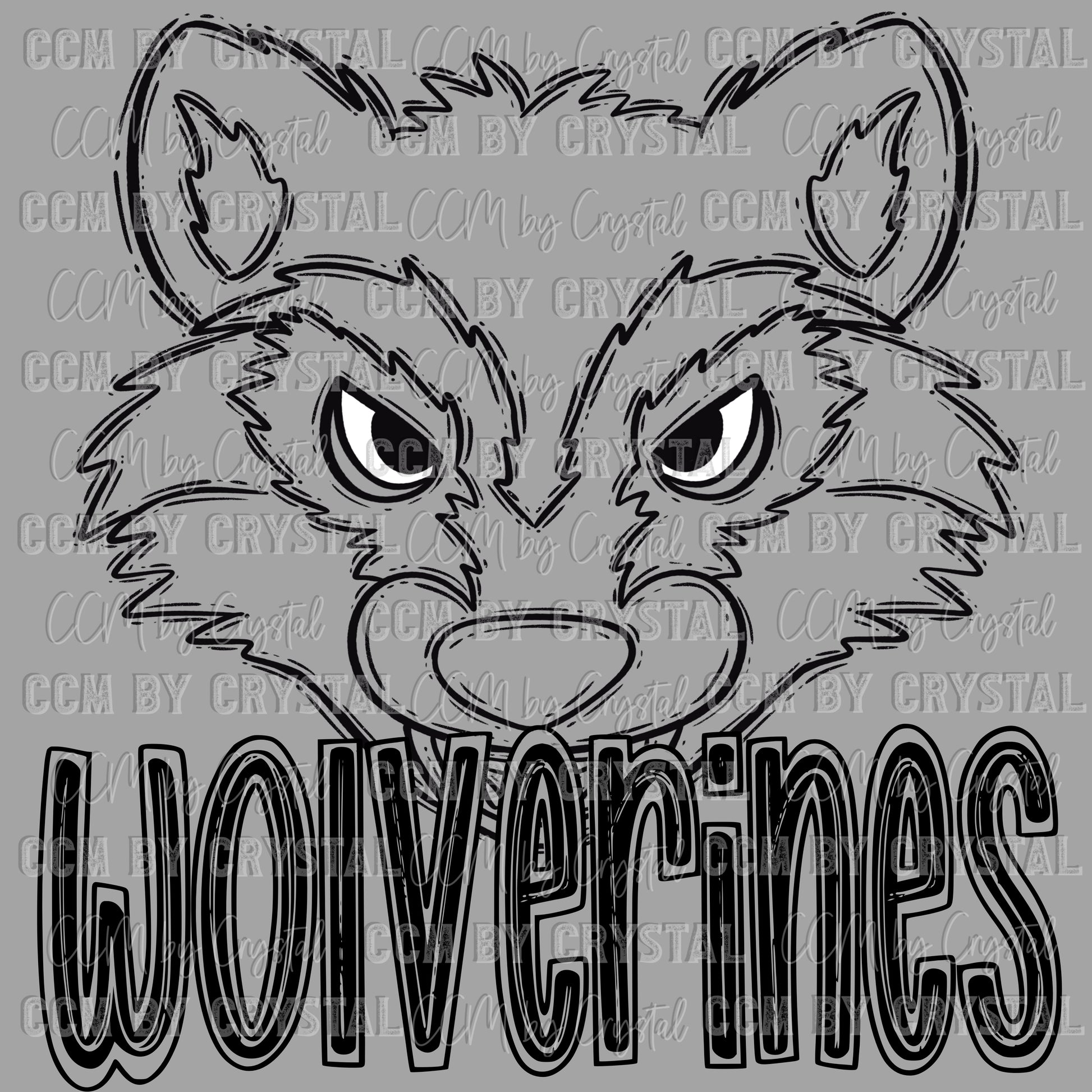 Wolverines Doodle Mascot Sports Ready to Press Transfer DTF Transfer Sublimation Transfer